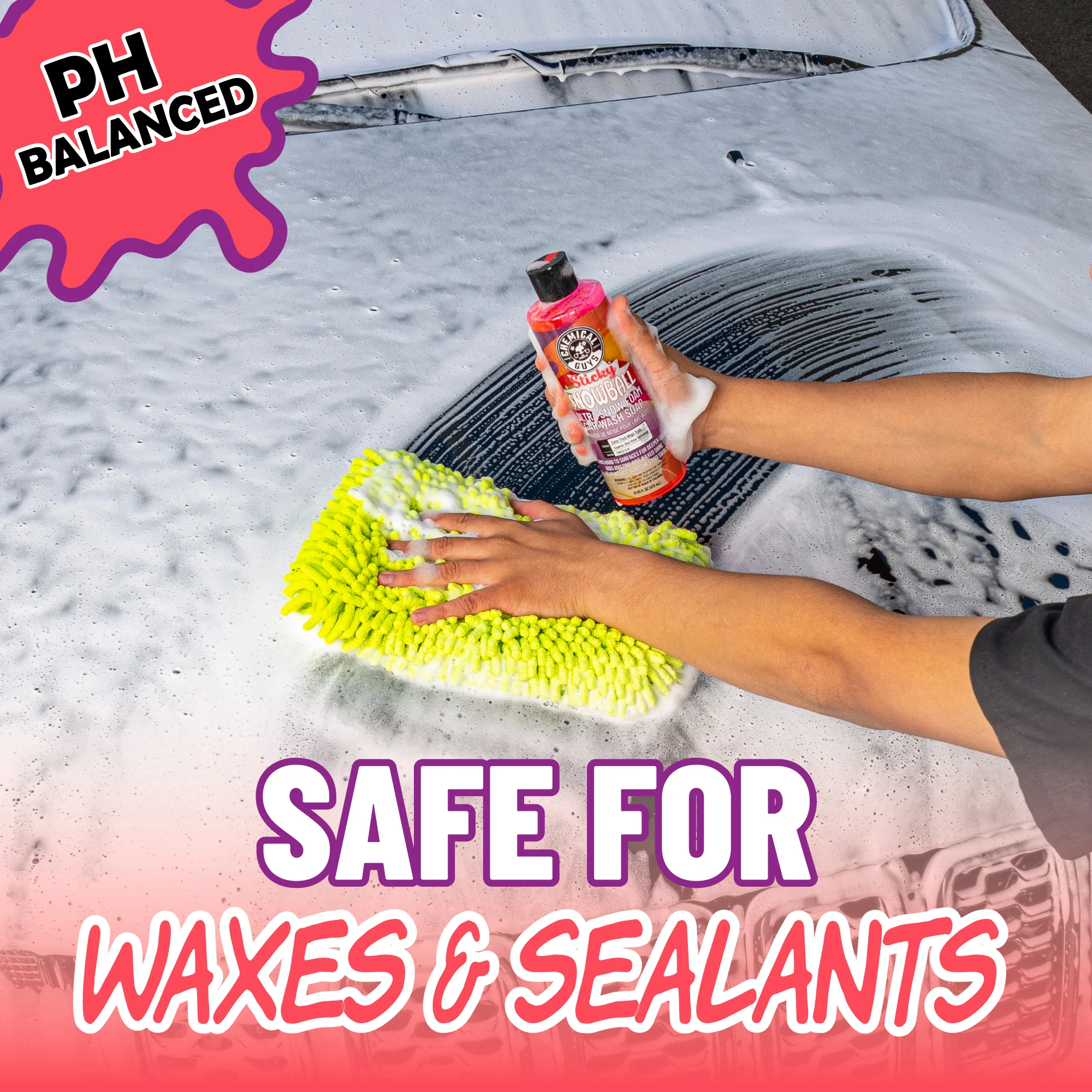 Förutom rengöring bidrar tillsatta glansförstärkare till en nyvaxad känsla med fin lyster. Formulan innehåller även tillsatser som förbättrar avrinning och minskar risken för vattenfläckar och ränder vid torkning, vilket ger ett jämnt och snyggt slutresultat. Sticky Snowball sköljs enkelt av och lämnar en ren yta utan rester.