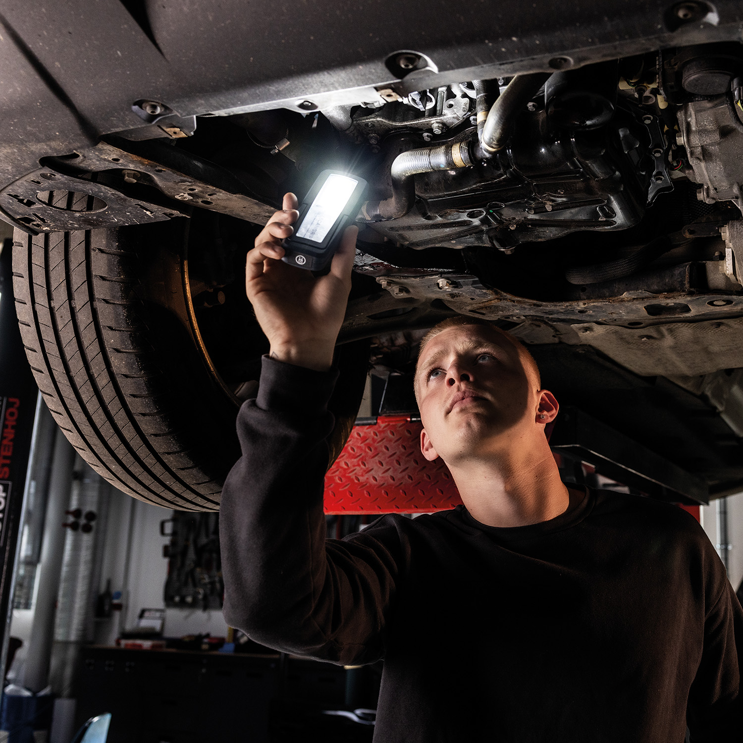 Uniform 03.6208 är en robust och uppladdningsbar LED-handlampa med medföljande laddstation för smidig laddning i verkstadsmiljö. Med justerbar ljusstyrka upp till 500 lumen, IP65-klassning och flera fästmöjligheter passar den utmärkt för daglig inspektion och service i krävande arbetsmiljöer.