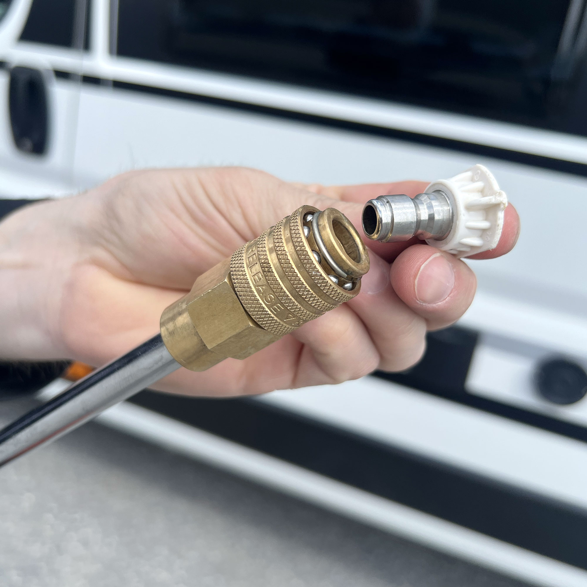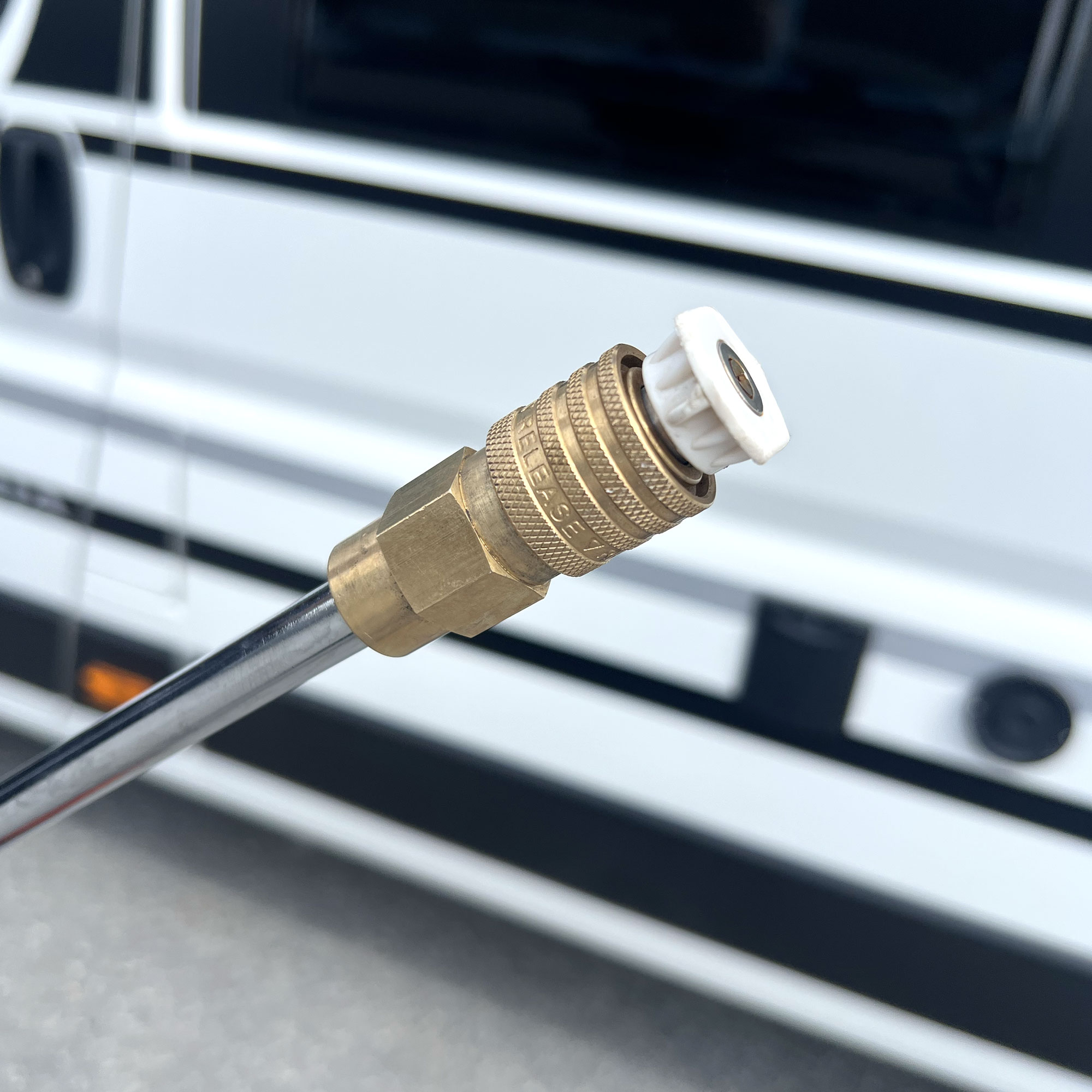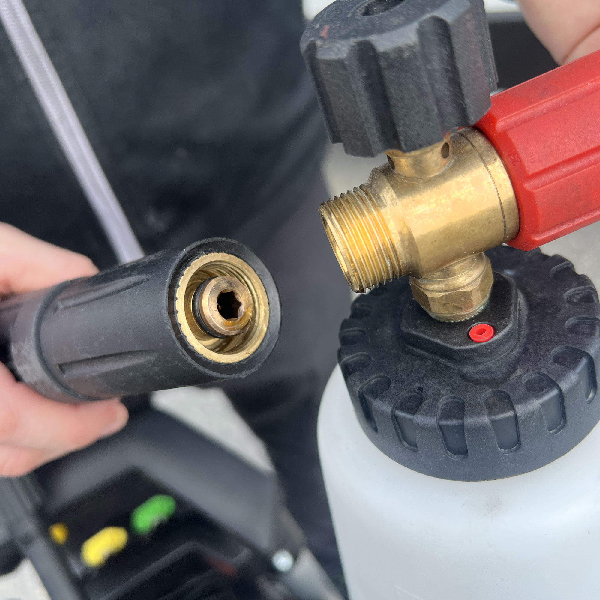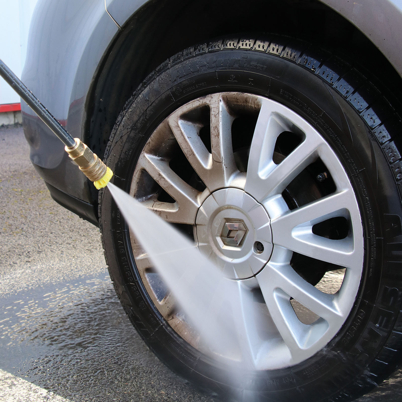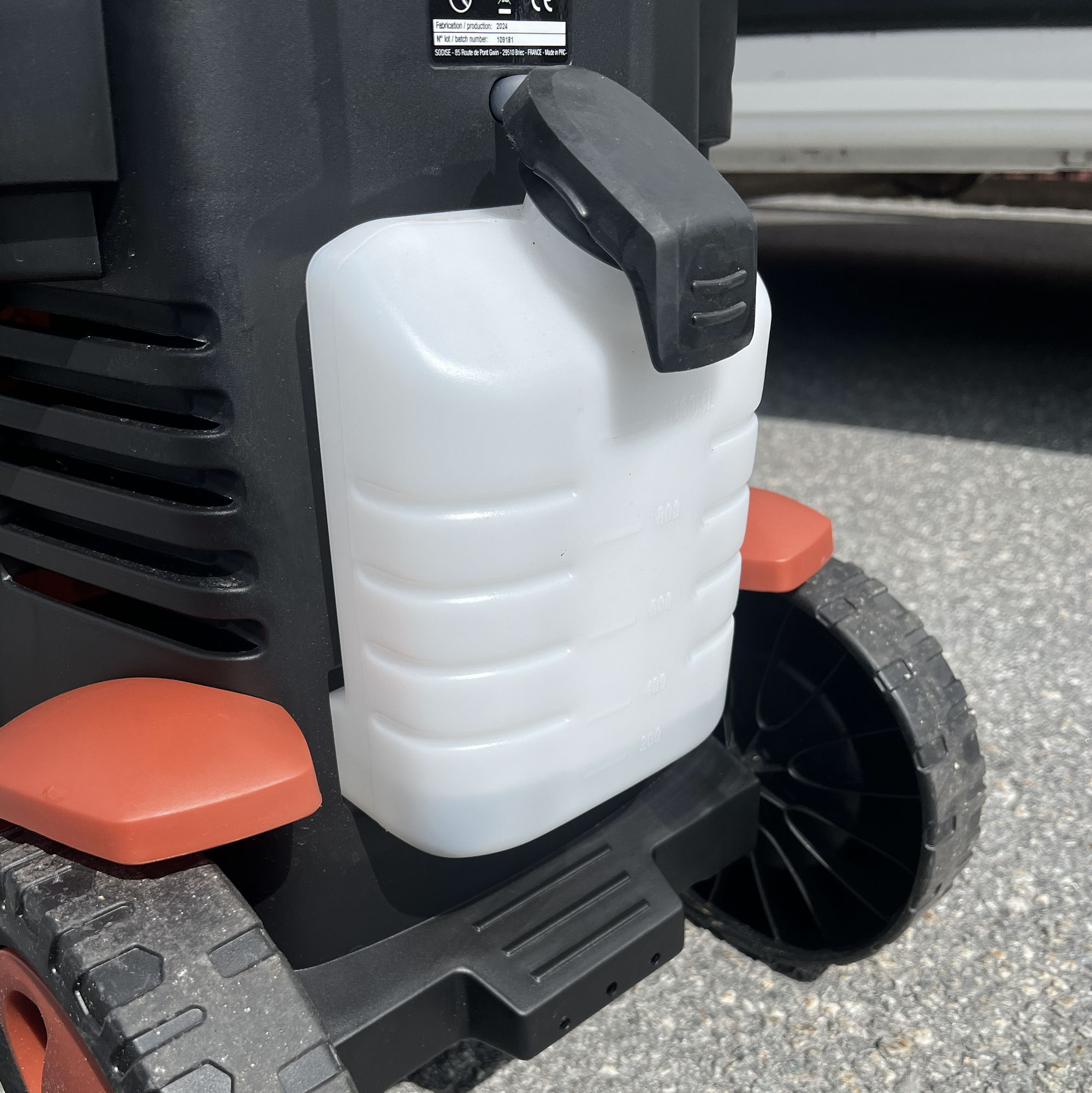 - Levereras med 5 munstycken, spolhandtag i metall, vattenfilter med Gardena-nippel samt rengöringsmedelsbehållare (0,8 l)