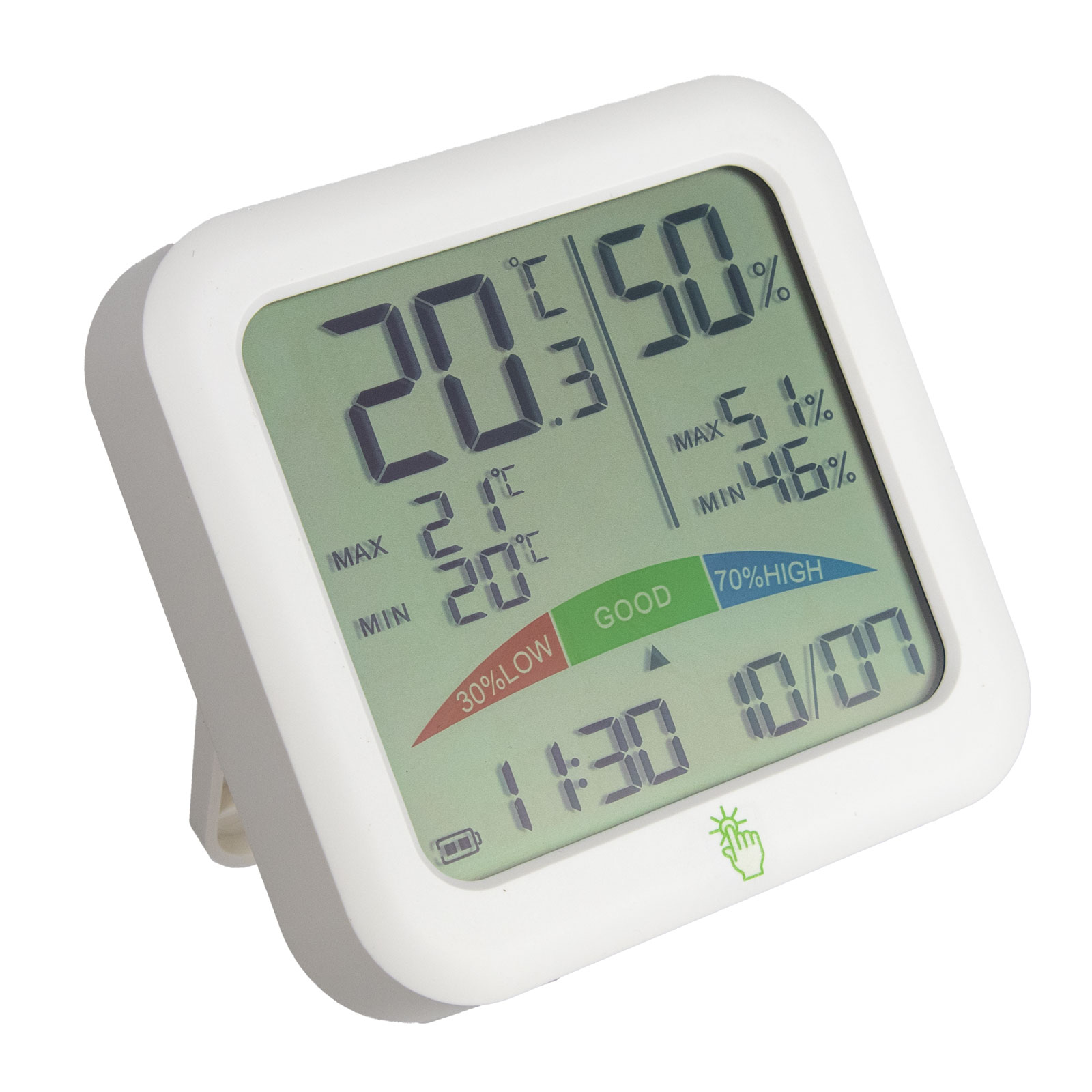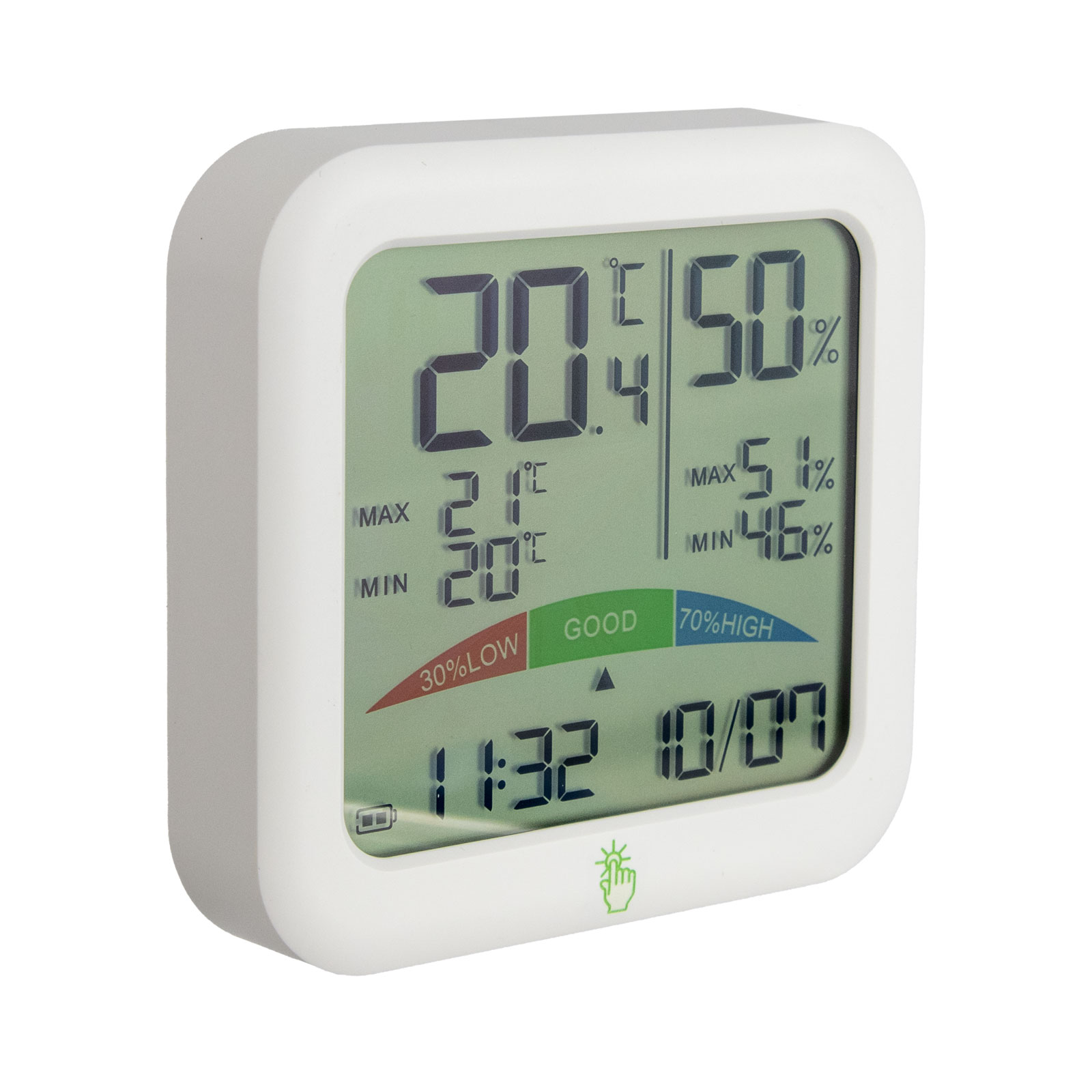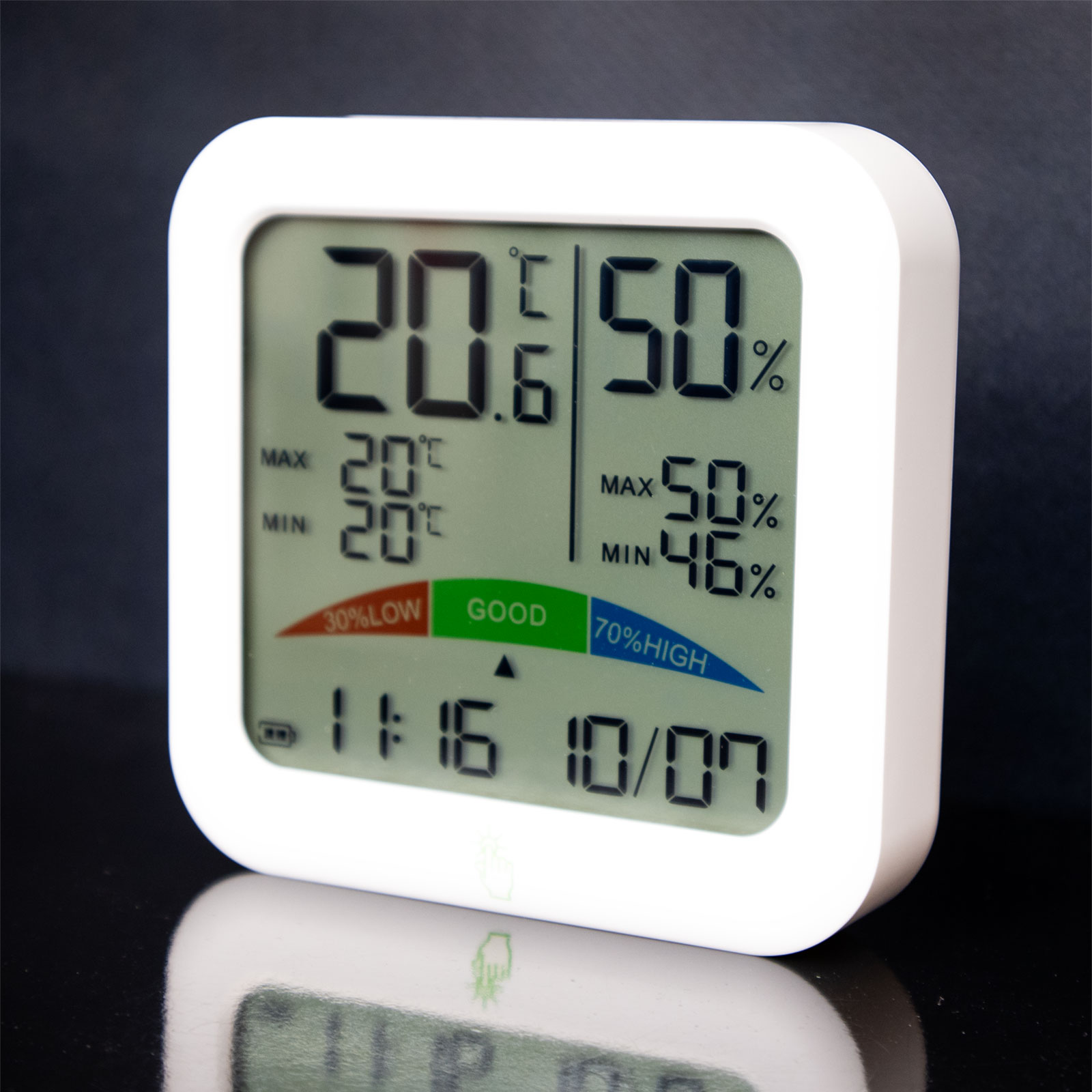 - Luftfuktighet 5–95 % RH – Noggrannhet ±2 %, uppdateras var 60:e sekund