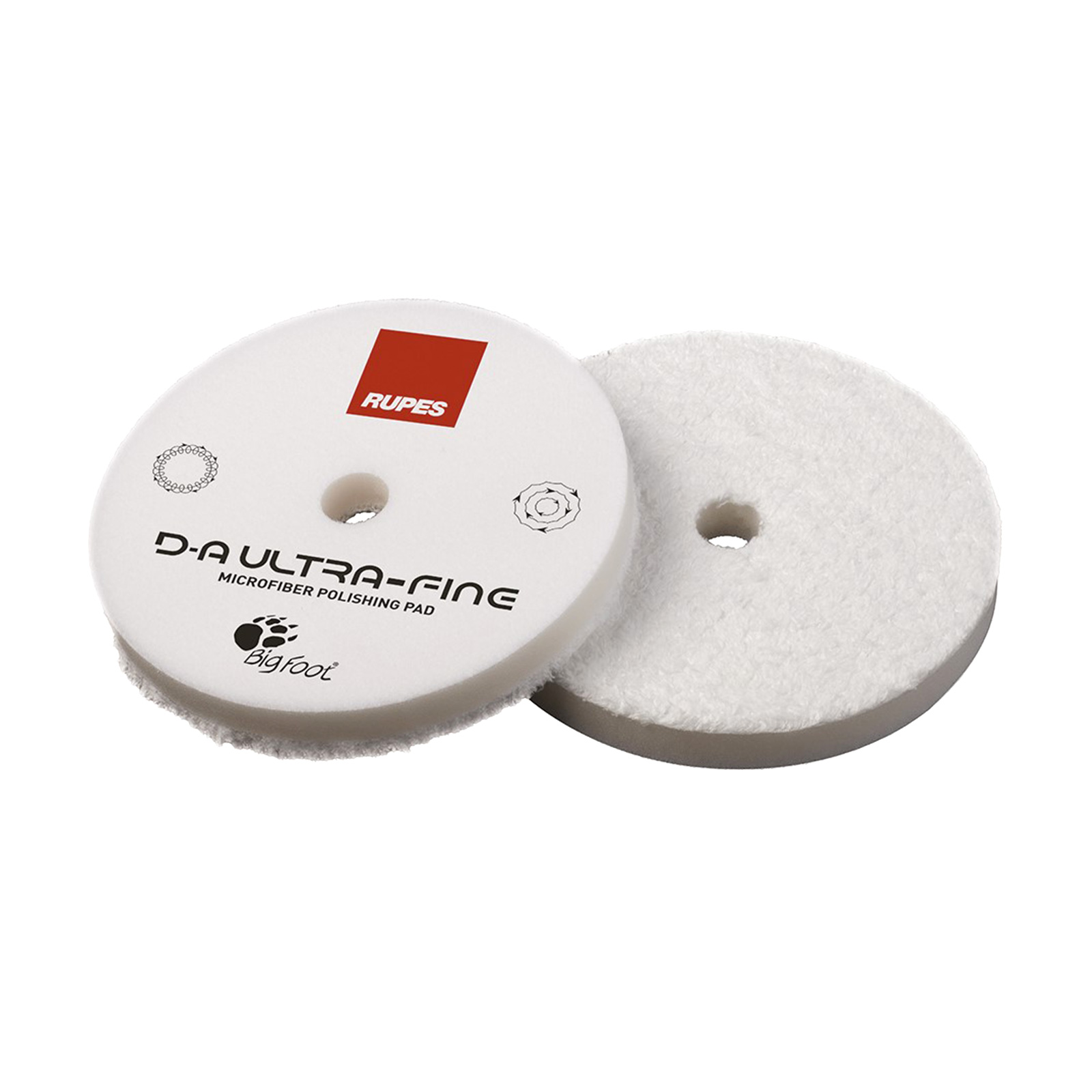 Rupes BigFoot mikrofibertrissa Ultra-Fine vit, för oscillerande/kuggdrivna polermaskiner. Extra mjukt skum för maximal följsamhet och högglansig finish. Perfekt för borttagning av ytliga defekter.