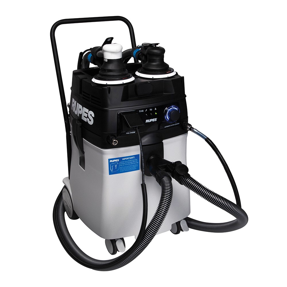 Rupes S245EPL är en kompakt och tystgående slipdammsugare för både el- och tryckluftsverktyg. 45 liters kapacitet och en stark 1200W motor. Dammklass L. Möjlig att köra med två användare samtidigt, utrustad med automatisk filterrengöring och har manuell/automatisk start, justerbar sugeffekt samt serviceindikator. Klarar både våt- och torrsugning och har vätskesensor för ökad säkerhet. Med fäste för SYSTAINER T-LOC-system.