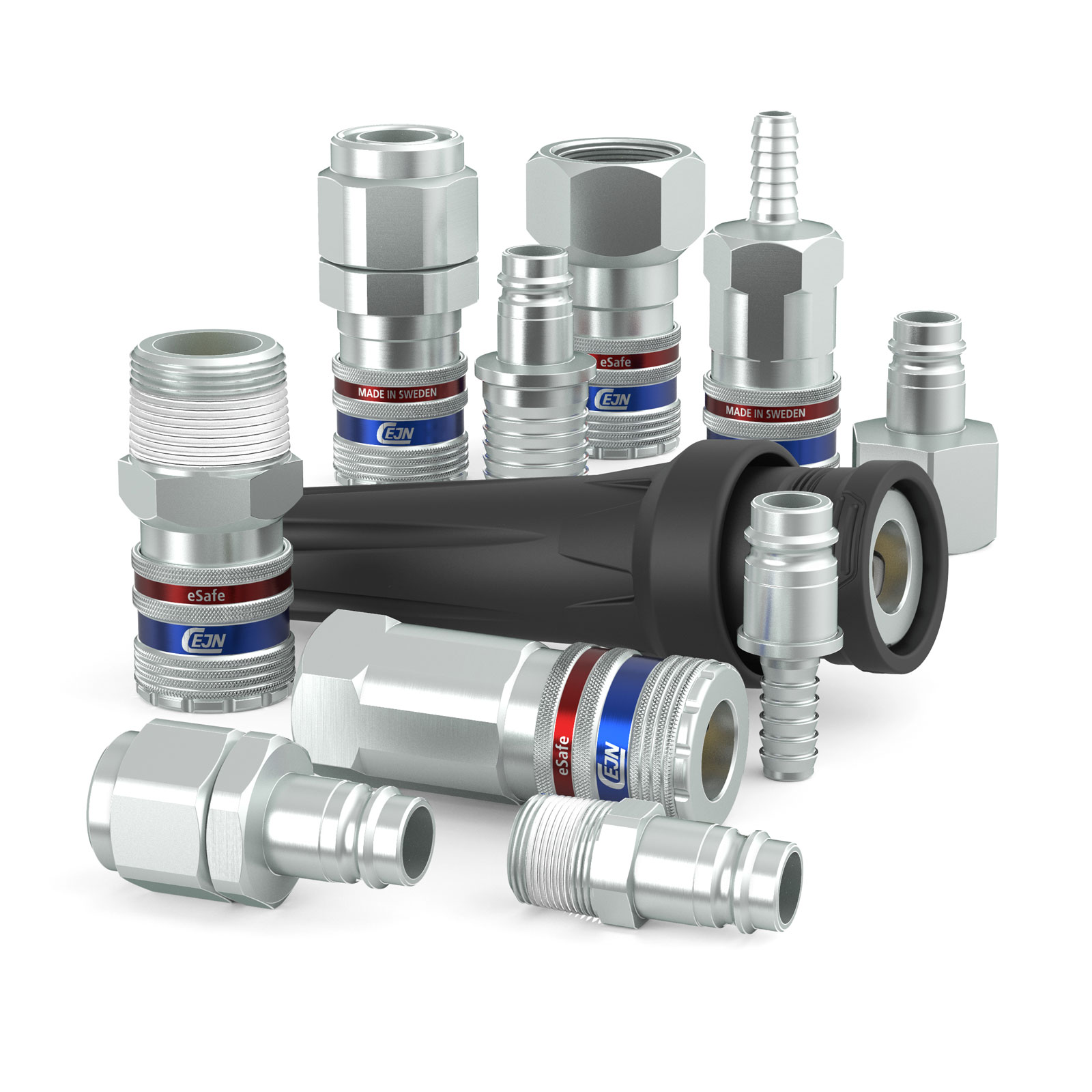 Kopplingen är kompatibel med standardnipplar och uppfyller ISO 4414 samt EN 983. Den passar särskilt bra i industriella miljöer där både säkerhet, hållbarhet och högt flöde är avgörande krav.
