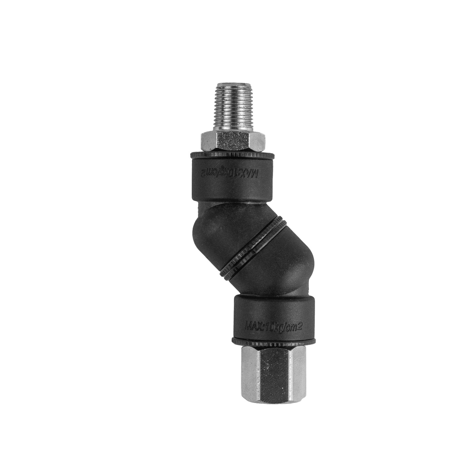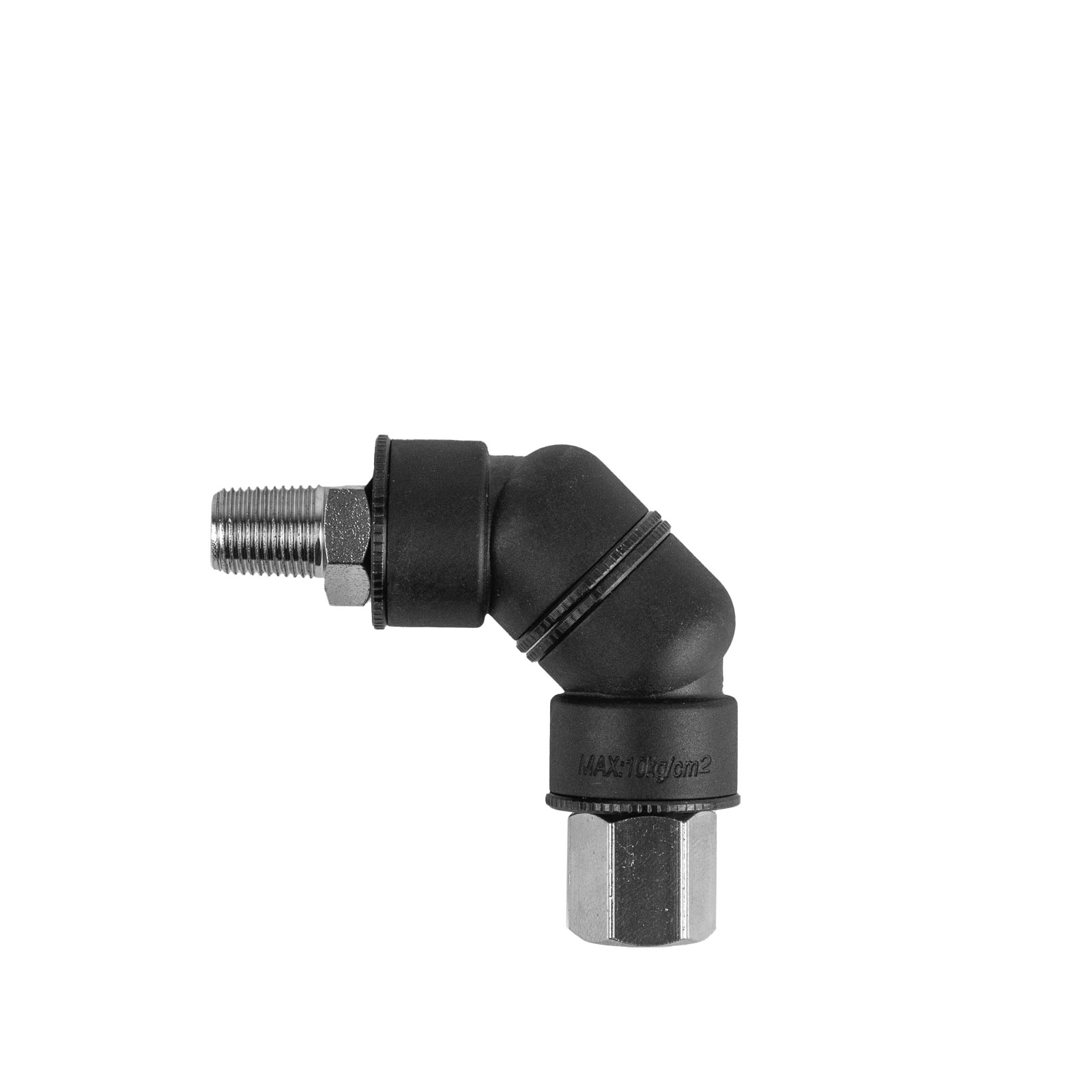 Svivelkoppling för tryckluftsverktyg som ger smidigare arbete och minskat slitage på slangar. Den 360° svivlande funktionen gör att slangen håller sig i optimal position och minskar risken för belastningsskador. Tack vare kompositkropp lämpar den sig även för känsliga ytor utan att repa.