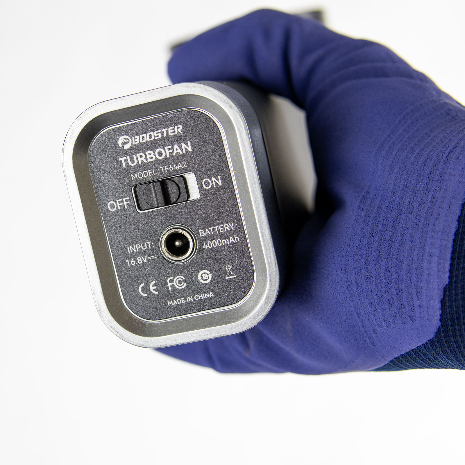 Fläkten drivs av ett integrerat batteri på 4000 mAh som ger 15 min arbetstid på max effekt, med en toppeffekt på 750 W. Motorn drar max 55 ampere. Hastigheten styrs enkelt steglöst med vredet från en svalkande bris till full storm i turboläget som aktiveras med den svarta knappen. Tillverkad i slitstarkt ABS och silikon för att tåla tuffa miljöer och är utrustad med en smidig ledlampa framtill. Den kompakta storleken och ergonomiska designen gör den enkel att hantera i verkstads- och industrimiljöer. Levereras med laddare och manual.