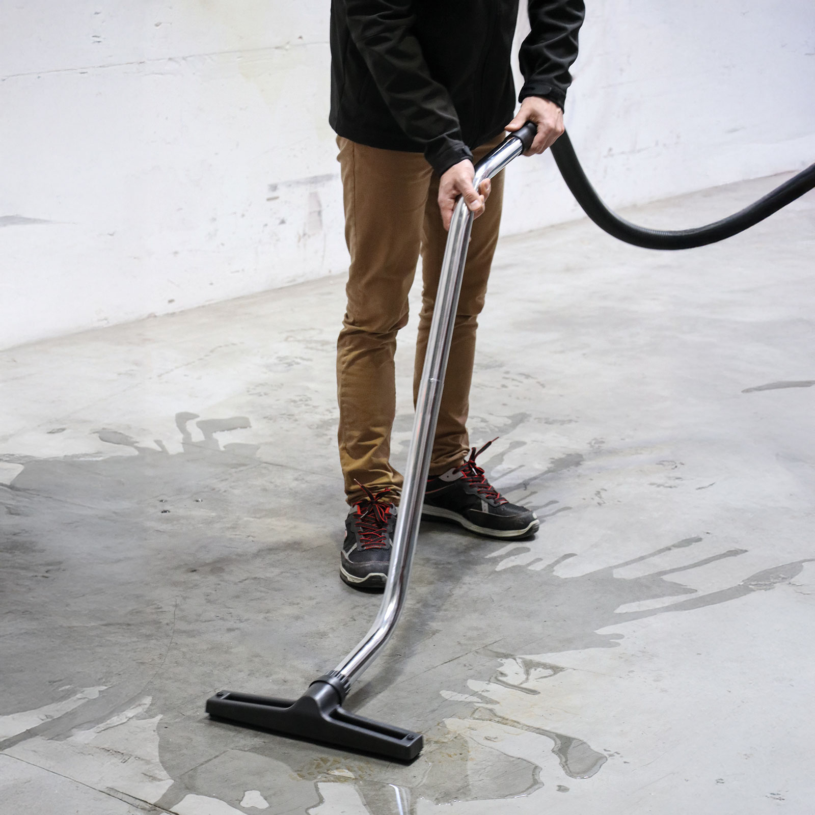 Den praktiska tilt-funktionen gör tömningen av vätskor och skräp enkel och snabb. Utrustad med stora metallclips, kraftigt körhandtag och stabil konstruktion med två fasta och två svängbara hjul ger dammsugaren smidig manövrering även vid tung belastning.