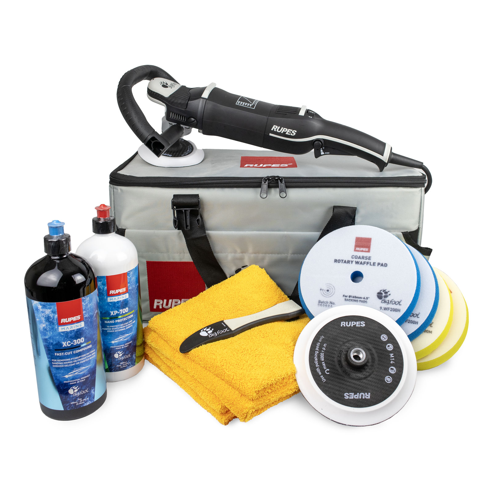 Detta kit är resultatet av omfattande tester och är noga utvalt för att ge bästa möjliga resultat på kortast tid. Med högkvalitativa polermedel, polertrissor och vax från Rupes får du en snabb och säker poleringsprocess samt ett kraftfullt skydd för din båt under hela säsongen.